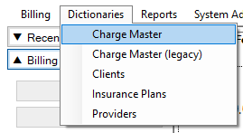 To launch Charge Master, select the Dictionaries menu, then select Charge Master.