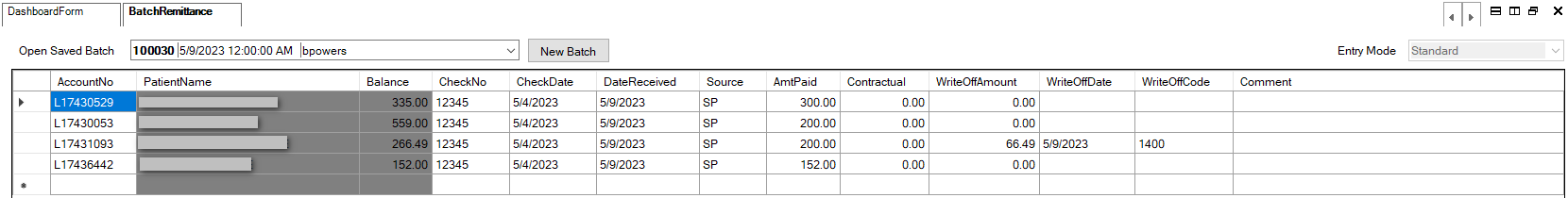 The Batch Remittance function allows for entering a batch of payments or adjustments.