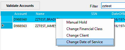 In the dialog that appears, choose the new date of service and enter a reason for the change.