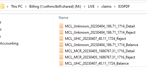 Remittance files returned from nThrive are posted in M:\LIVE\claims\835PDF.