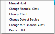 - Manual Hold - this will move the account to the Manual Hold worklist. When in manual hold, the account will not be validated or picked up for claims. Go to the Manual Hold worklist and right-click the account to remove it from manual hold.