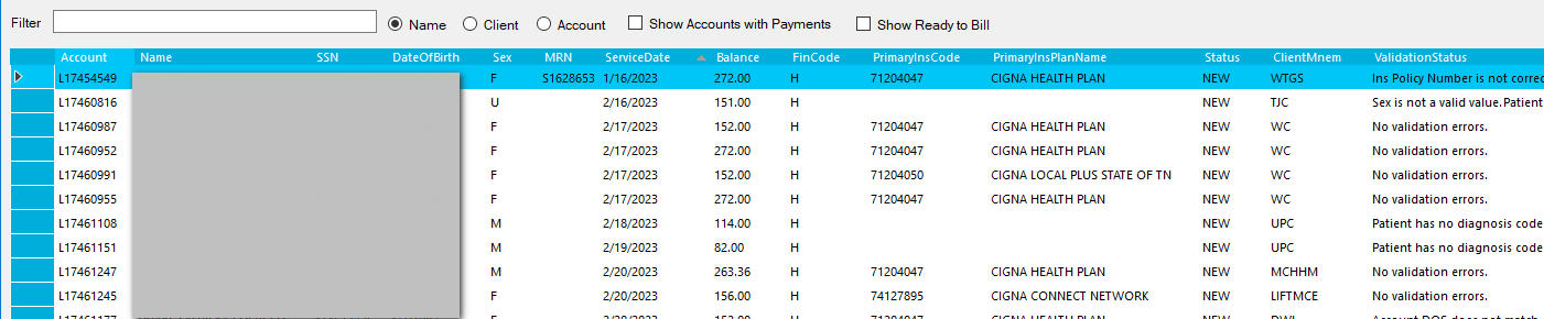 | Submitted Professional | Account professional claims submitted to clearinghouse |